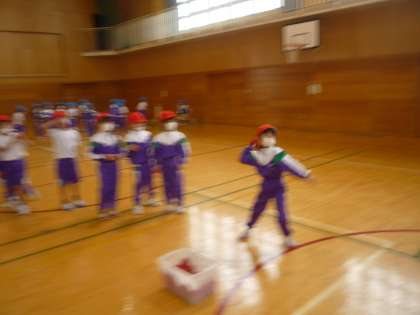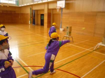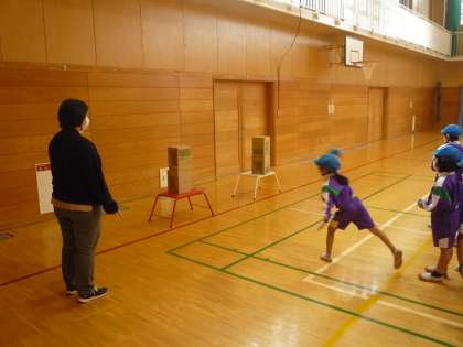キッズわざ7の「投げるわざ」のメダルに挑戦しています。