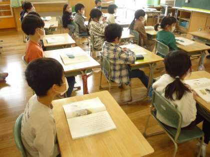 「たぬきの糸車」の学習で、感想の書き方を話し合いました。