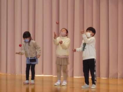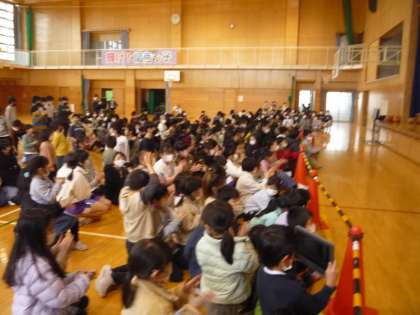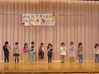 集会委員会が企画したらんしゅうチャレンジフェスティバルを行いました。自分の得意なことを発表しています。たくさんの友達が観にきてくれています。