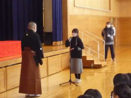 下学年と上学年に分かれての2回講演を行いましたが、どの学年の子供たちも笑いどころで大笑いしていました。上学年の体験コーナーでは、国語科で学習した「じゅげむ」を披露する子供もいました。