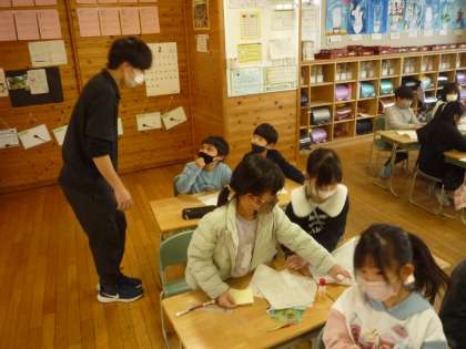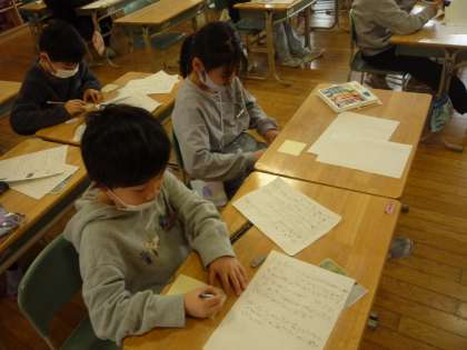 お話作りの学習では、先ずは付箋にあらすじを書き出しました。