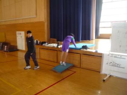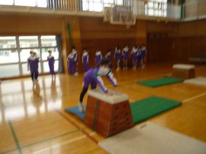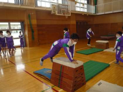 きれいに開脚跳びができるように挑戦しています。また、台上前転等の別の技にも挑戦しています。