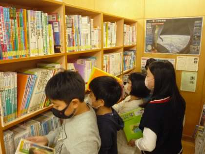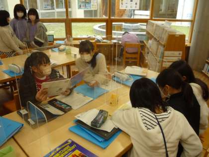 図書室の本やインターネットの資料を活用して、レポートをまとめています。
