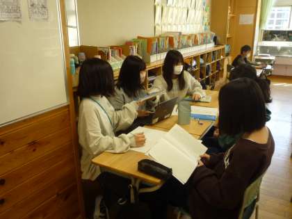 友達にインタビューしたり、プレゼンにまとめたりしながら学習を進めています。