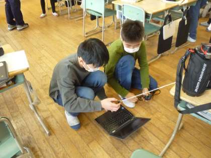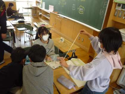 振り子の学習の様子です。実験方法を自分たちでいろいろ工夫しています。