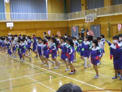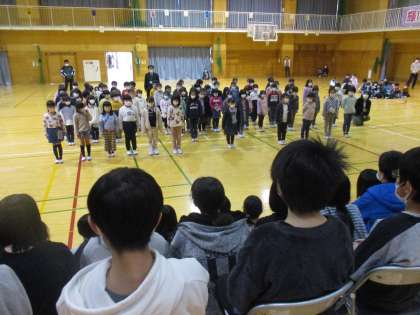 6年生の卒業をお祝いするために、各学年で出し物を披露しました。