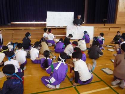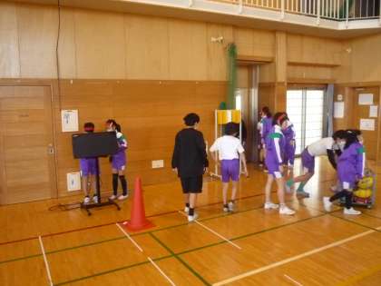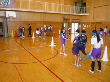 フラッグフットボールの学習が始まりました。ゲームの仕方やルール等を学習しています。準備も自分たちでできるようにします。