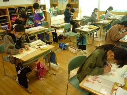 忘れられない気持ちを絵で表現しています。多いのが区域音楽会で、広いオーバードホールで歌った気持ちのようです。