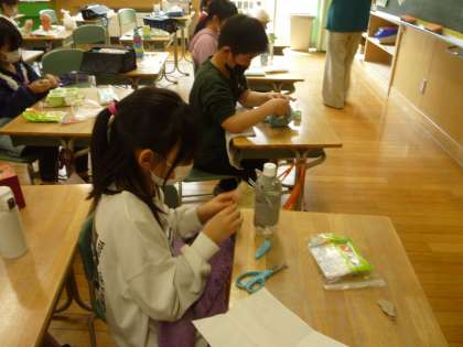 空き缶やペットボトルを活用して、小物入れを作っています。