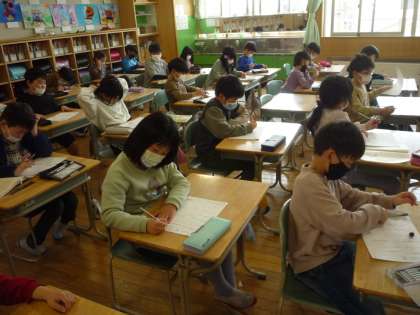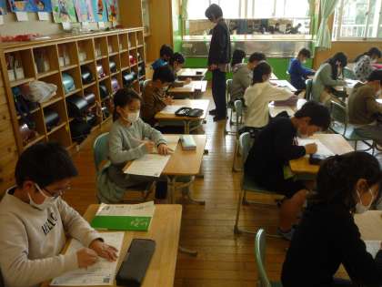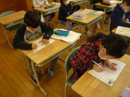 鉛筆の持ち方に気を付けて、漢字の学習をしています。