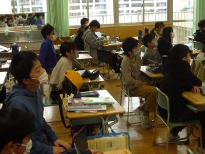 調べたことを発表しました。聞き手も真剣に聴いています。