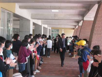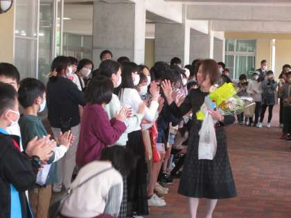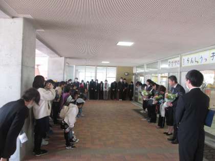 退職・転出される先生方のお見送りをしました。たくさんの蘭秀っ子が来てくれました