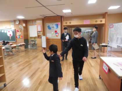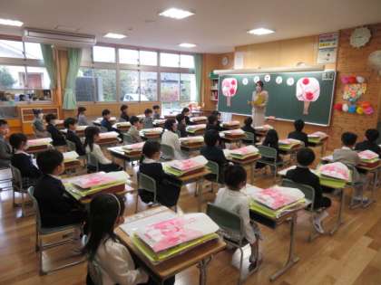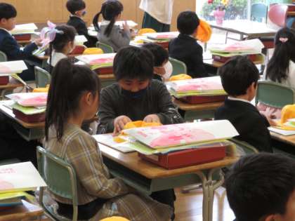 ぴかぴかのランドセルをかついで、新1年生が登校してきました。