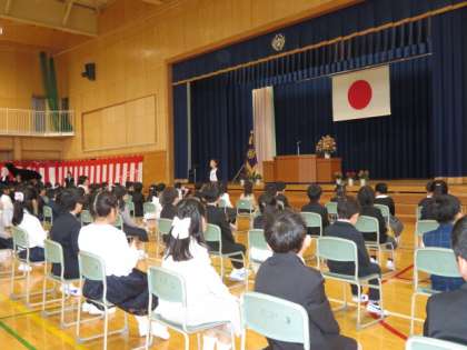 児童代表の6年生が1年生に歓迎の言葉を贈りました。