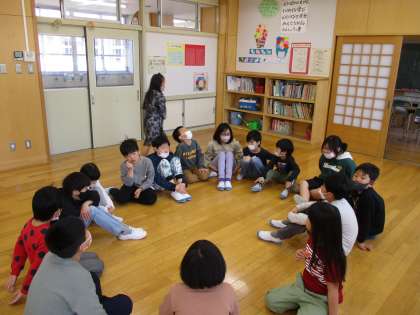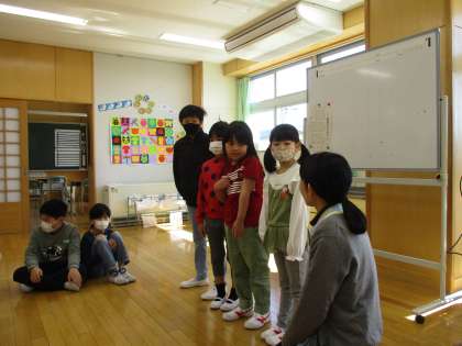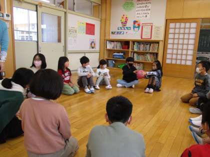 新一年生が自己紹介をしました。ばくだんゲームやじゃんけんゲーム、はんかちおとしをして、楽しいひとときをすごしました。
