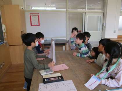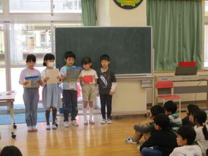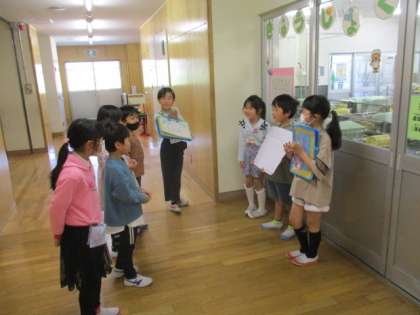 2年生は、1年生さんに山室小学校のことをもっと知ってもらって、山室小学校を好きになってほしいと学校探検を企画しました。各場所では、学校クイズを行いました。