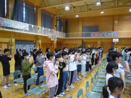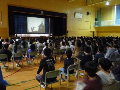創校150周年記念事業として、ジャックランダルさんの影絵公演を鑑賞しました。英語の歌を歌って楽しんだり、知っているお話とは少し異なる展開にたくさんの歓声があがったりしていました。影絵を初めて見る児童も多く、とても貴重な体験になりました。
