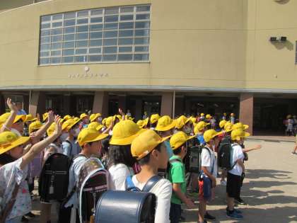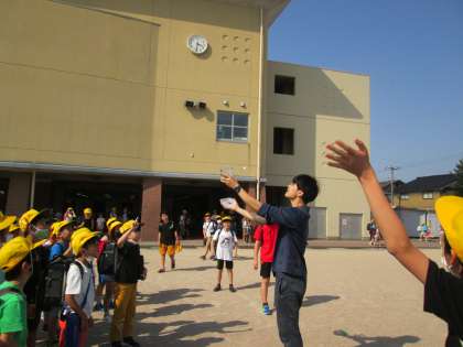 モンシロチョウの幼虫が羽化して、成虫になりました。理科の授業で観察したり、育てたりしてきた感謝を込めて、3年生全員でお見送りをしました。