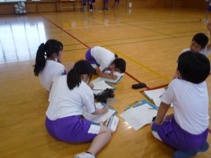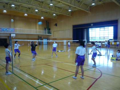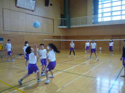 ソフトバレーボールの学習が始まりました。昨年度よりもレベルアップしたルールで試合をしました。3回で相手に返し、得点につなげるためにチームで考えていきます。