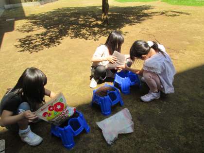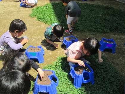 あさがおの種を蒔きました。「お水をもっとあげたらいいかな」「早く芽がでないかな」と、あさがおの成長が楽しみでならない様子でした。