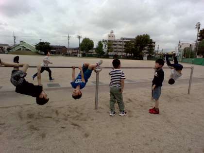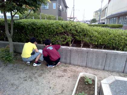 2年生はマイタイムに植え込みの下のごみ拾いをしたり、鉄棒をしたりしていました。朝から、子供たちが目当てをもって取り組めるよう支援しています。