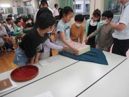 3時間目に租税教室がありました。税金の働きについて教えていただき、大切さを改めて理解しました。また、1億円のレプリカにも触らせていただき、目を輝かせてその重さを実感していました。