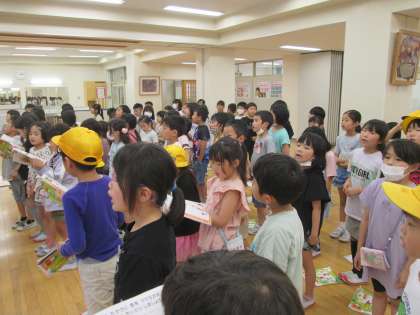 2年生のみんなで「ドレミの歌」を合唱しました。音の高さに気を付けて、楽しみながら歌いました。