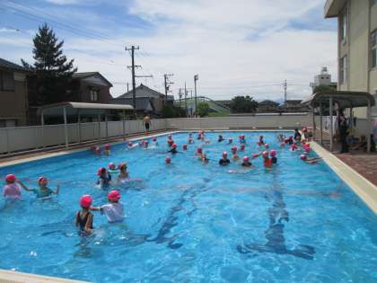 3年生になってはじめての水泳学習を行いました。水に慣れるためにもぐったり歩いたりして、楽しく安全に学習することができました。