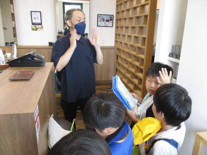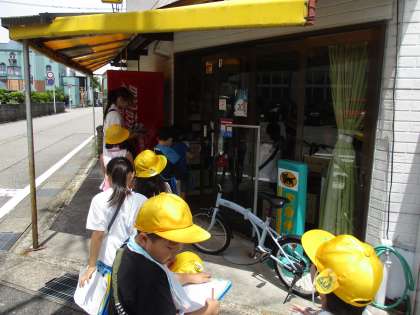 生活科の学習で町たんけんを行いました。お店の方の話を真剣に聞いてメモしたり、山室校区の新しい一面を見付けて目を輝かせたりしました。