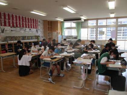 夏休みに向けてどの教科も復習に入りつつあります。友達と教え合ったり、これまでの学習をじっくり見直したりするなど、落ち着いて学習をすることができています。