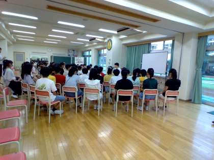 山室小学校の卒業生の平野先生が漫画家になるまでのお話や、漫画家になってからの生活についてのお話を聞きました。読者に喜んでもらうったときの嬉しい気持ちなど、仕事に対する思いについてお話していただきました。
