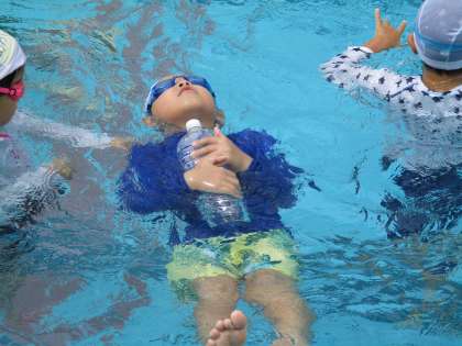今日は、落水したときにどうすればよいかを「落ち着いて、力を抜いて、助けを求める」という「おちた」の言葉に合わせて学びました。