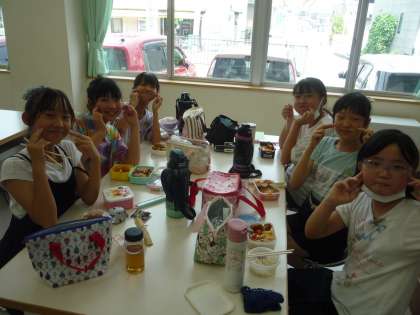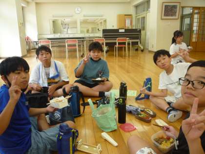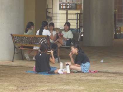 今日はチャレンジ陸上記録会の予定日だったので6年生の昼食はお弁当でした。学年の仲間と、それぞれ好きな場所で楽しい昼食時間になりました。