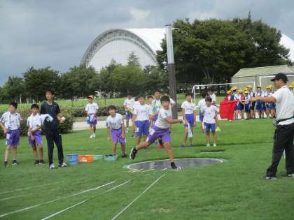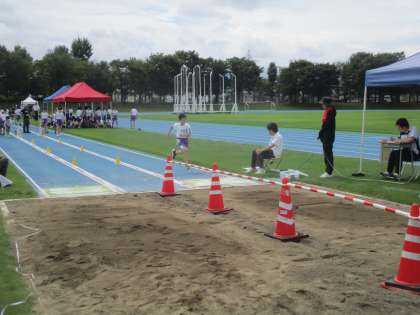 初めての陸上競技場での記録会で、少し緊張した様子も見られましたが、練習の成果を精一杯出し切りました。暑い中、とてもよく頑張りました。