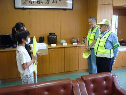 「富山南たそがれキラキラ作戦」の一環として、交通安全協会の方から反射材が贈呈されました。暗くなるのが早くなってきました。反射材をご活用いただくなど放課後においても、交通安全に気を付けて過ごせるよう、ご協力お願いします。