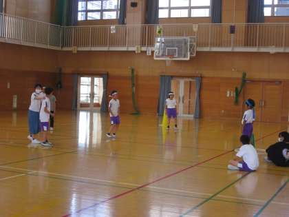 体育でTボールを行っています。今日は、体育館全体を使って、Tボールの試合を試しにやってみました。試合を終えた後、子供たちは「安全に行うためにルールはこうしたらよいのではないか」「〇団は守備の場所を工夫している」など、Tボールをよりよく行っていくための意見を出し合っていました。子供たちは主体的に頑張っています!!