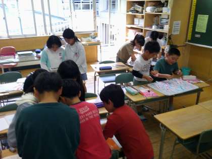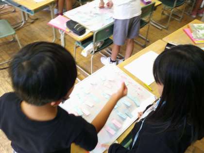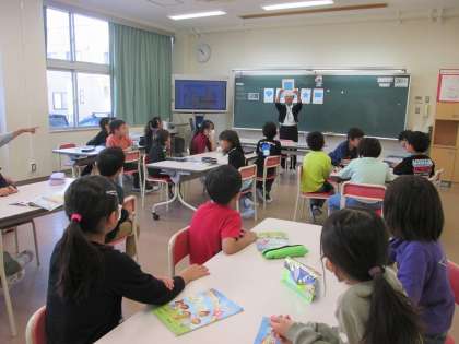 国語科「へんとつくり」では、漢字には「糸へん」や「木へん」のようにへんをもった漢字があるということを学習しました。また、外国語活動では、形を英語でなんと言うのか学習し、カルタ等を使った活動をして楽しみました。