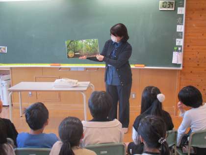 2年生は図書館訪問がありました。読み聞かせでは、真剣にお話を聞いて物語の様子を想像していました。ブックトークでは、多くの本を紹介してもらい、子供たちの「本を読みたい」という気持ちが高まりました。