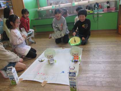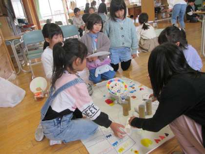 2年生が作った「おもちゃランド」に遊びに行ってきました。やさしく遊び方を教えてもらったり、折り紙の景品をもらったりして、楽しんできました。