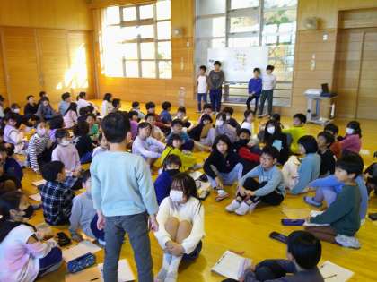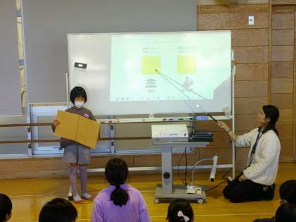 今週から、まとめた調査結果を、学年のみんなに発表しています。3組の様子です。