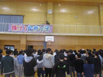 卒業アルバム用の個人写真やクラス写真を撮影しました。全員参加で撮影に臨むことができました。