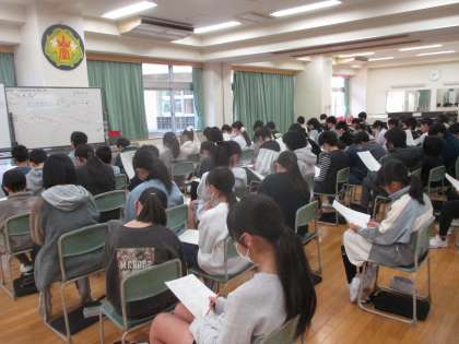 卒業式に向けて、合唱曲を決めました。歌詞をじっくりと見ながら歌を聴き、どの曲が自分たちに合っているかよく考えて選びました。