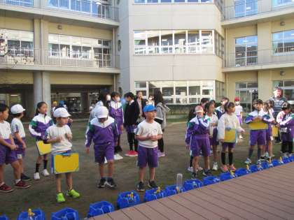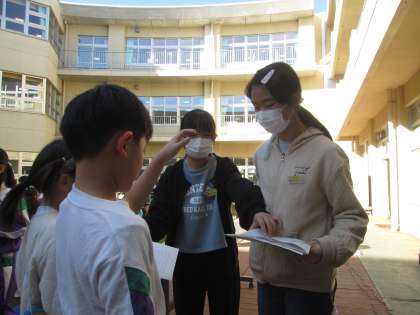 中庭クイズラリーを行いました。仲間と協力しながら全問正解を目指しました。