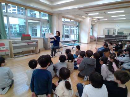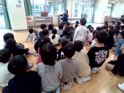 読み聞かせ会では「がぶりもぐもぐ」「かえるのいえさがし」を読んでいただきました。