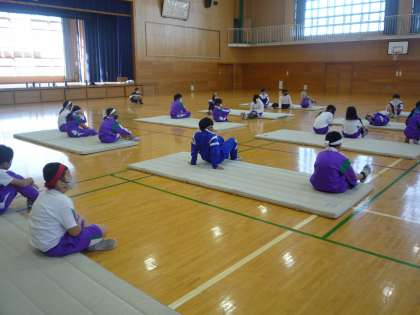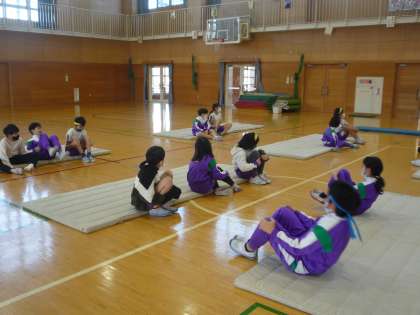 スポーツ指導員の方に、マット運動を指導していただきました。丁寧に分かりやすく教えていただき、子供たちから「後転ができるようになった」「側転のコツが分かった」と喜びの声があがっていました。