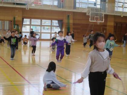 今回、2年2組さんがぽかぽかスマイルを増やそうと「学年なわとび集会」を企画してくれました。みんなでどれだけ跳べるか競争したり、なわとびリレーをしたりしました。みんなで楽しく跳んで、ぽかぽかでいっぱいになりました。