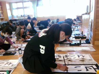 書初大会は落ち着いて、練習の成果を発揮しました。
