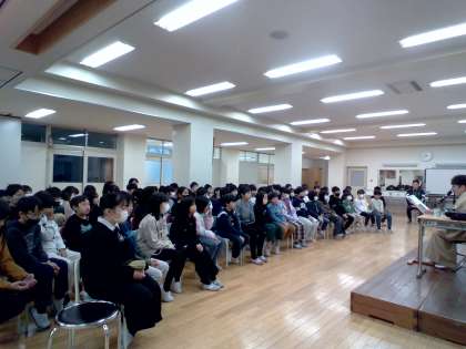 中学年の朗読会を行いました。3年生は最後の感想交流の時間に、担任の先生から「心に残ったお話を教えてください」と聞かれ、「登場人物のさみしかった気持ちが伝わってきました」「主人公はどうしてお母さんに会えなかったのかな」など、心に残った理由を交えて感想を話していました。