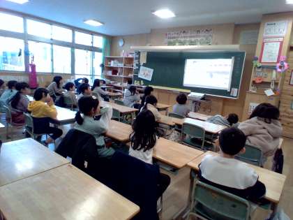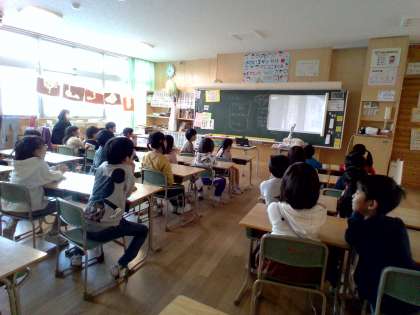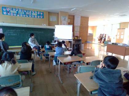 地震から身を守るための避難訓練を行いました。1年生の教室では、訓練の前に、地震がきたらどんな危険があるか、どのように身を守ったらよいかについて、動画を見ながら考えていました。学んだことをもとに、実際に身を守る行動を訓練で実践しました。