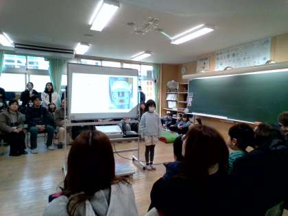 3年生の「はじめていっぱい3年生〜ステップアップした自分を振り返ろう〜」の発表の様子です。この1年間で心に残ったことについて、聞いている人に聞こえる声で一生懸命発表しました。